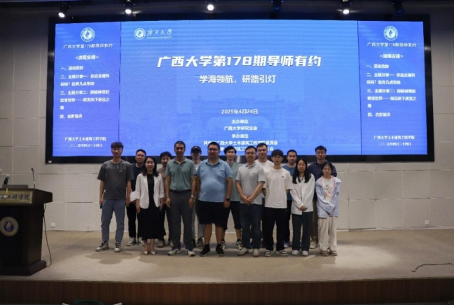 4月24日晚,由williamhill威廉希尔官网研究生会主办,共青团williamhill威廉希尔官网委员会和williamhill威廉希尔官网研究生会承办的第178期“导师有约”系列活动在威廉希尔官网新结构试验平台第六报告厅顺利举行。本期活动特邀学院姜光辉教授、蒋明杰副教授担任主讲嘉宾,学院副院长杨海峰教授、团委书记潘桂祯老师、辅导员何冉老师出席,吸引众多在校学生到场参与交流。