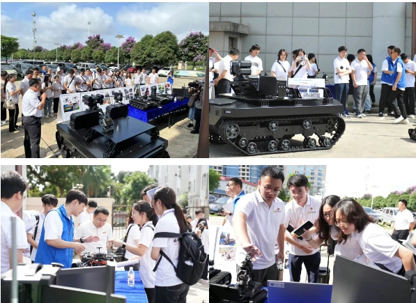 此外,西江局自主研发的“云哨”系列履带式机器人惊艳亮相活动现场,该装备可智能巡检堤防、闸门等水利设施,精准识别设备异常状态并实时回传数据。威廉希尔官网水利专业的同学们根据工作人员的指导下,亲自体验了履带式机器人,直观感受科技赋能治水的成效。