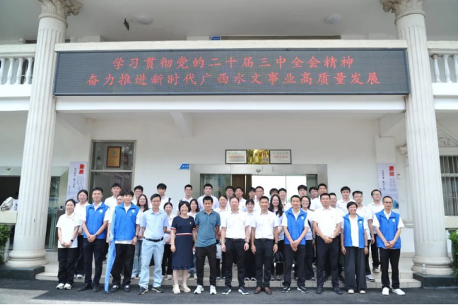 “南宁水文中心站是全区四个‘年水文站’的基层站点之一,也是第一批入选水利部的百年水文站,早在1907年就已有老一代水文人在邕江边开展水文测报工作。”在南宁水文中心站,南宁水文中心站副站长徐锋向同学们介绍了该站的发展历史及其在珠江流域治理中的重要作用。作为珠江流域西江水系郁江干流的重要控制站,南宁水文中心站是国家基本水文站,被誉为邕江防汛安全的守护者、邕江流域的“晴雨表”。长期以来,该站干部职工秉承“求精、务实、奉献、创新”的精神,加密监测值守、强化预测预报预警,为地方防汛抢险决策提供及时准确的水雨情信息和技术保障。