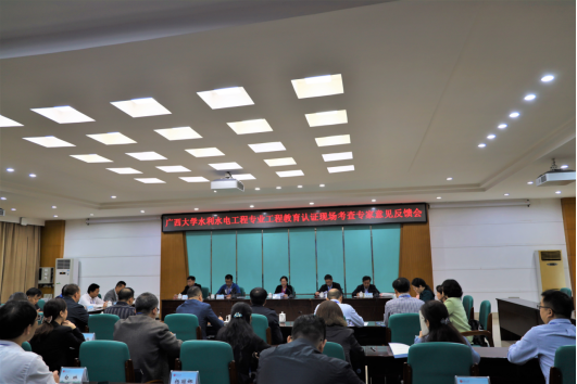 学校高度重视专业认证工作,加强政策引导,加大投入保障,强化教学质量保障体系建设。在专业认证现场考察的专家意见反馈会中,专家组肯定了学校以及水利水电工程专业认证全体教师工作态度认真负责,专业在岩溶和东盟方面建设有特色,实验条件、教学设备良好;与大藤峡水利枢纽、龙滩水电站、百色水利枢纽等国家重大工程建立了产教融合校外实习实践基地。