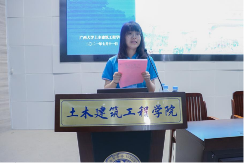 2018级土木工程专业的谭静雯作为营员代表进行发言。她表示,四天的营员生活让她切身感受到了学院丰富的科研资源和良好的科研环境。自己将努力备战考研,争取进入学术殿堂学习并与众多名师交流,也希望自己能为williamhill威廉希尔官网“一流学科”建设贡献一份力量。