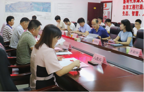 桂中治旱乐滩水库引水灌区工程是国务院部署的节水供水重大水利工程之一,建成后可为灌区内150万人解决水源及灌溉问题。7月19日上午,调研小组一行来到桂中治旱乐滩水库引水灌区建设管理局进行调研。副局长卢浩勇、总工程师陆冠面、工程管理科科长韦志州、人事教育科科长黄美连、科技科科长韦松婷、工程管理科副科长孙友权热情接待了调研小组。