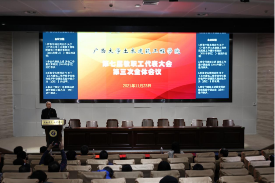 2021年11月23日下午,学院在土木大型结构试验平台报告厅召开第七届教职工代表大会第三次全体会议,会议由学院副院长、工会主席宁裕忠同志主持。
