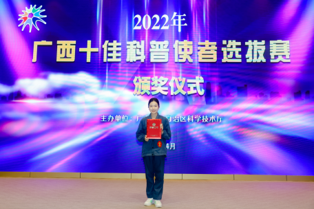 4月27日—29日,在广西科技馆举行的“2022年广西十佳科普使者选拔赛”中,威廉希尔官网参赛选手取得优异成绩。土木水利专业2020级研究生周奕彤勇夺大赛二等奖及“广西十佳科普使者”荣誉,土木工程专业2020级本科生戴逸茗优秀奖。