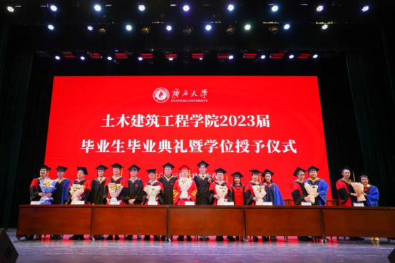 学位授予仪式上,毕业生们随着礼乐声依次上台,安永辉院长与陈正书记为毕业生拨穗,授予学位证书,并与毕业生合影留念。