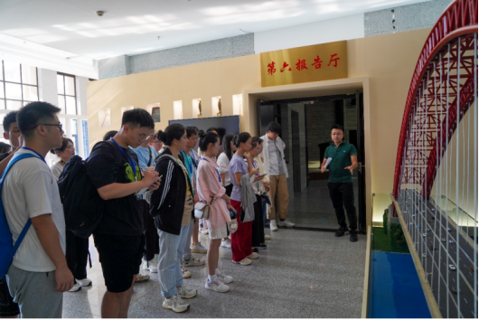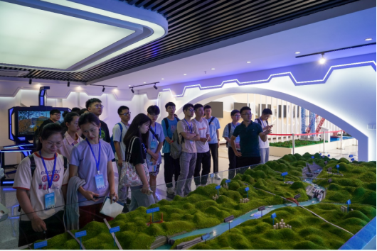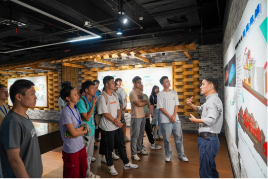 随后,营员们来到了华蓝集团进行实地调研。在南国弈园中,营员们收获了壮美的民族风格和高水平的智力运动竞赛场地相融合的文化体验。南国弈园的“半城绿树半城楼”,让营员感受到自然通风、遮阳隔热措施等与南方地区气候特征融为一体的成熟技术与设计手法。在南国乡村,营员们在工作人员的带领下参观了“农房、科技、展览”相结合的南国乡村农房科技博物馆。在“开轩面场圃,把酒话桑麻”的田园风光下,让营员们在感受到“结庐在人境,而无车马喧”的田园景象的同时,也能感受到华蓝设计团队用专业知识和科技力量实施乡村振兴,促进乡村美好建设。