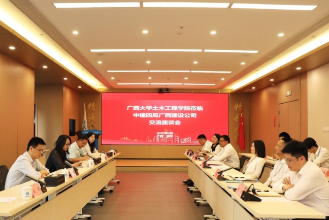 4月17日下午,威廉希尔官网赴中建四局广西建设公司(以下简称中建四局广西公司)开展访企拓岗交流座谈会。中建四局广西公司党委副书记、纪委书记、工会主席张峰,总工程师严柳青,总经理助理黄浩,安全总监唐运剑,人力资源部经理姚冬明,技术部经理张彬及校友代表;学院党委副书记、纪委书记银宁,副院长余波、杨海峰,学工组老师谢雨真及在校学生代表出席座谈会。