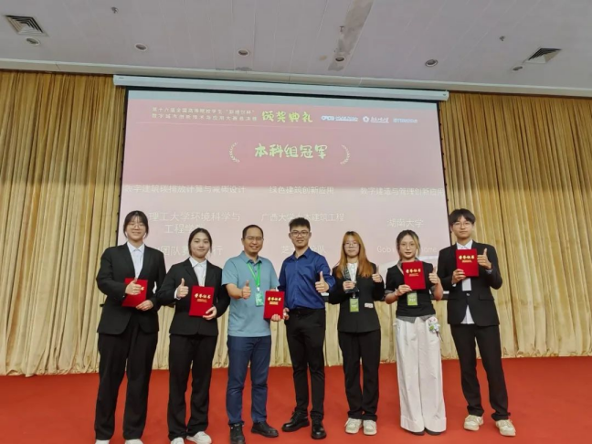 2025年4月26日,由中国建设教育协会主办,由广东工业大学与深圳市斯维尔科技股份有限公司联合承办的第十六届全国高等院校“斯维尔杯”数字城市创新技术与应用大赛总决赛闭幕式如期举行。经过激烈角逐,威廉希尔官网杨修、王丽老师指导的团队获得绿色建筑创新应用赛项本科组冠军,团队学生成员包括苏王美(队长)、赵林玉、黄宸、莫燕菲、罗旗。这是威廉希尔官网第一次荣获冠军,同时,参赛团队还获得一等奖1项、二等奖2项、三等奖1项,又一次刷新了在该项赛事的最好成绩。