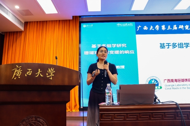 裴继影副教授带来《基于多组学研究珊瑚对全球变暖的响应》主题报告,她运用代谢组学、转录组学与蛋白质组学等多组学策略,系统解析了两种造礁石珊瑚在高温胁迫下的响应机制。多组学数据的整合为深入理解珊瑚白化机制及其适应潜力提供了坚实的理论基础,对珊瑚礁保护与管理策略的制定具有重要参考价值。