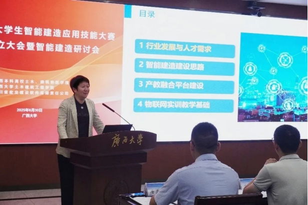会上,参会人员围绕智能建造领域的技术前沿、教育实践与产教融合展开深入研讨。北方工业大学土木工程学院纪颖波院长、贵州建设职业技术学院建工教研室李颖柯主任、四川省宏业建设软件有限责任公司数智高校部技术经理唐益粒分别从智能建造专业建设思路、高职院校智能建造人才培养探索、智能建造软硬件建设及典型案例等方面进行专题报告,为推动教育链、产业链、创新链深度融合,培养“懂技术、会应用、能创新”的复合型人才提供了探索思路和实际经验。