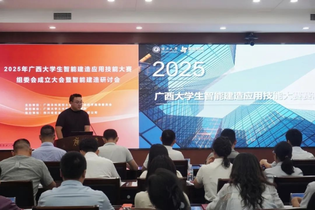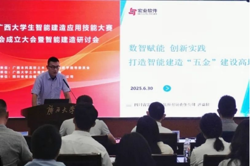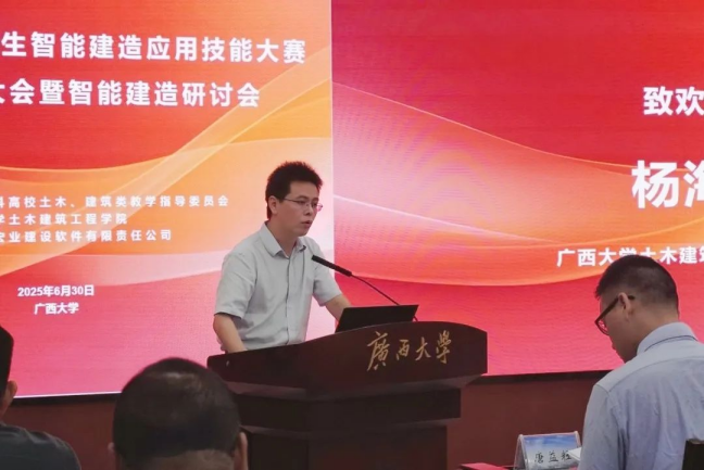6月30日,由广西本科高校土木、建筑类教学指导委员会主办、威廉希尔官网承办、四川省宏业建设软件有限责任公司协办的“2025年williamhill威廉希尔官网生智能建造应用技能大赛组委会成立大会暨智能建造研讨会”在威廉希尔官网君武馆第二会议室召开。威廉希尔官网副院长杨海峰、院长助理吴杰出席会议,北方工业大学、广西民族大学、桂林理工大学、桂林电子科技大学、广西科技大学、南宁职业技术大学等30余所区内外高校以及四川省宏业建设软件有限责任公司数智高校部负责人出席了本次大会。