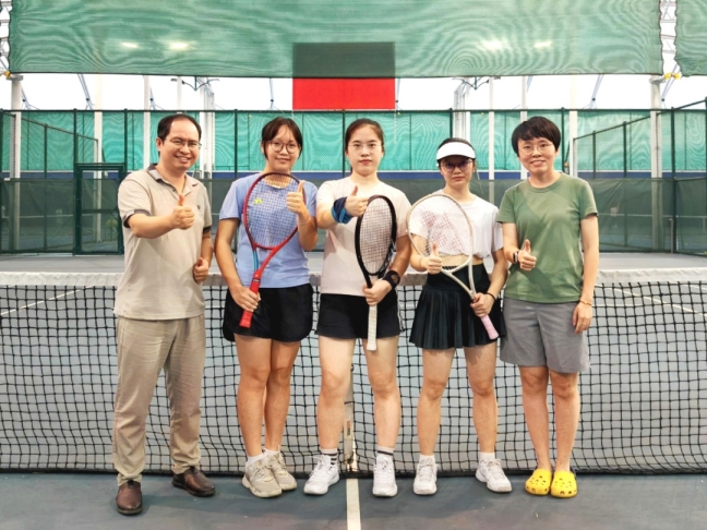 威廉希尔官网积极响应学校号召,精心组织、广泛动员,选出优秀的网球爱好者组建男女代表队。在比赛期间,学院为队员们提供了有力的支持和保障,队员们利用课余时间刻苦训练,科学备战,在高强度的男女队合练中不断磨合战术、提升团队协作默契。