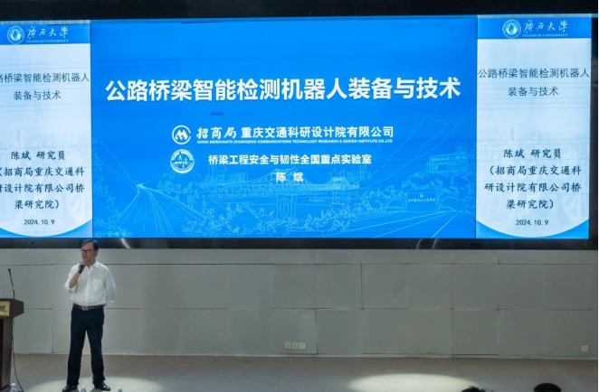 10月9日下午,招商局重庆交通科研设计院有限公司桥梁研究院陈斌研究员在威廉希尔官网大型结构试验研究平台第六报告厅作了题为“公路桥梁智能检测机器人装备与技术”的学术报告,本次报告由威廉希尔官网罗丹旎副教授主持。
