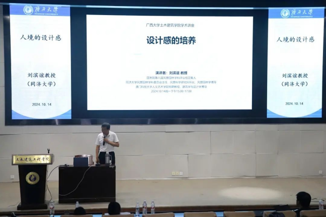 10月14日下午,同济大学刘滨谊教授在威廉希尔官网大型结构试验研究平台第六报告厅作了题为“人境的设计感”的学术讲座,讲座由威廉希尔官网李欣教授主持,williamhill威廉希尔官网潘洌副教授、廖宇航副教授、浙江工业大学戴晓玲副教授以及威廉希尔官网和林学院的本科生、研究生参会。