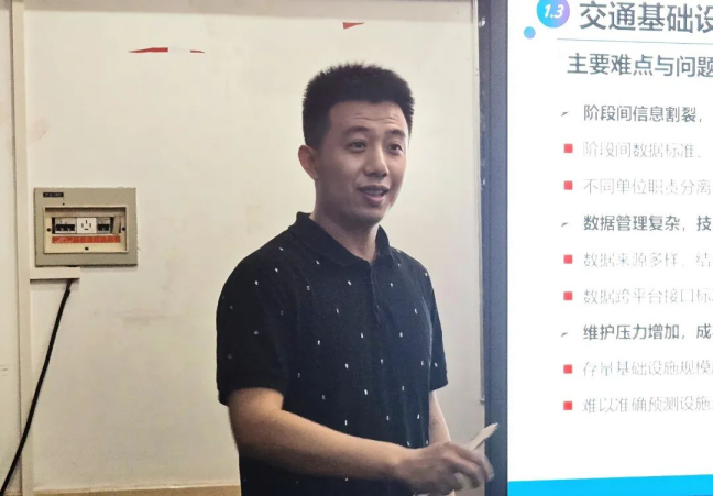 会议伊始,邱实教授首先就交通基础设施全生命周期管理展开介绍,着重阐释规划设计、施工建设、运营维护这三个关键阶段的相关内容,深入剖析了各阶段间存在的信息割裂、数据管理复杂以及维护压力较大等痛点问题。同时,邱实教授指出交通基础设施全生命周期未来的发展方向,具体包括:由项目导向转变为应用数字孪生技术的资产导向;从面向业务流程管理过渡到面向工程对象管理;从依赖传统方法逐步转向运用智能技术。